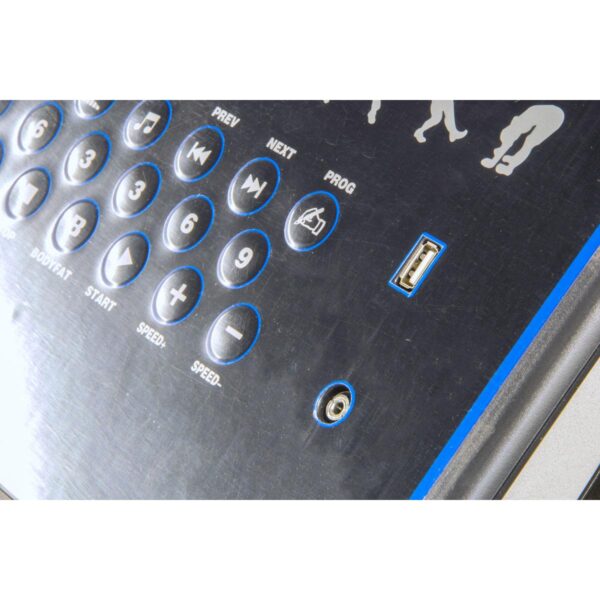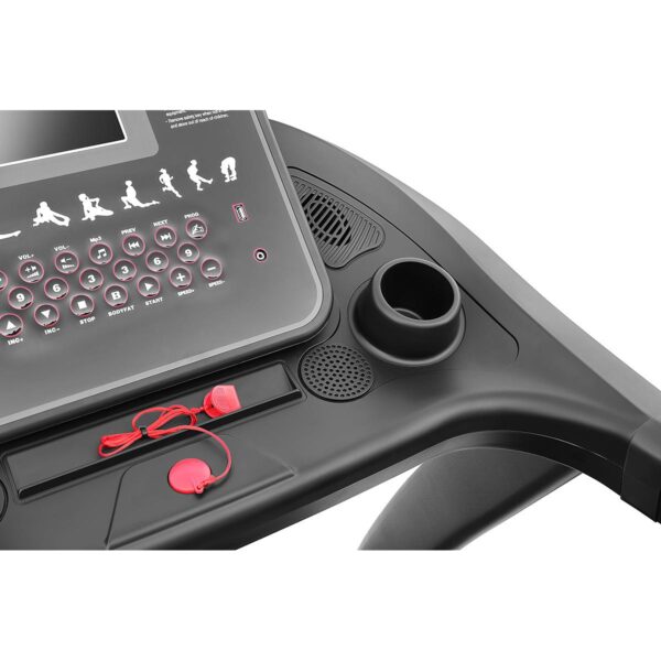Panel sterujący pozwoli Ci na wybór programu, przyspieszyć lub zwolnić pracę taśmy, włączyć i wyłączyć urządzenie, zmienić kąt nachylenia taśmy, a 25 calowy ekran LCD z wielofunkcyjnym licznikiem, wskaże Ci m.in. puls, czas, prędkość, dystans i kalorie. Dodatkowo w rączkach umieszczono specjalne czujniki pulsu, które pozwolą kontrolować przez cały trening pracę Twojego serca oraz przyciski do zmiany kąta nachylenia lub zwiększania i zmniejszania prędkości.