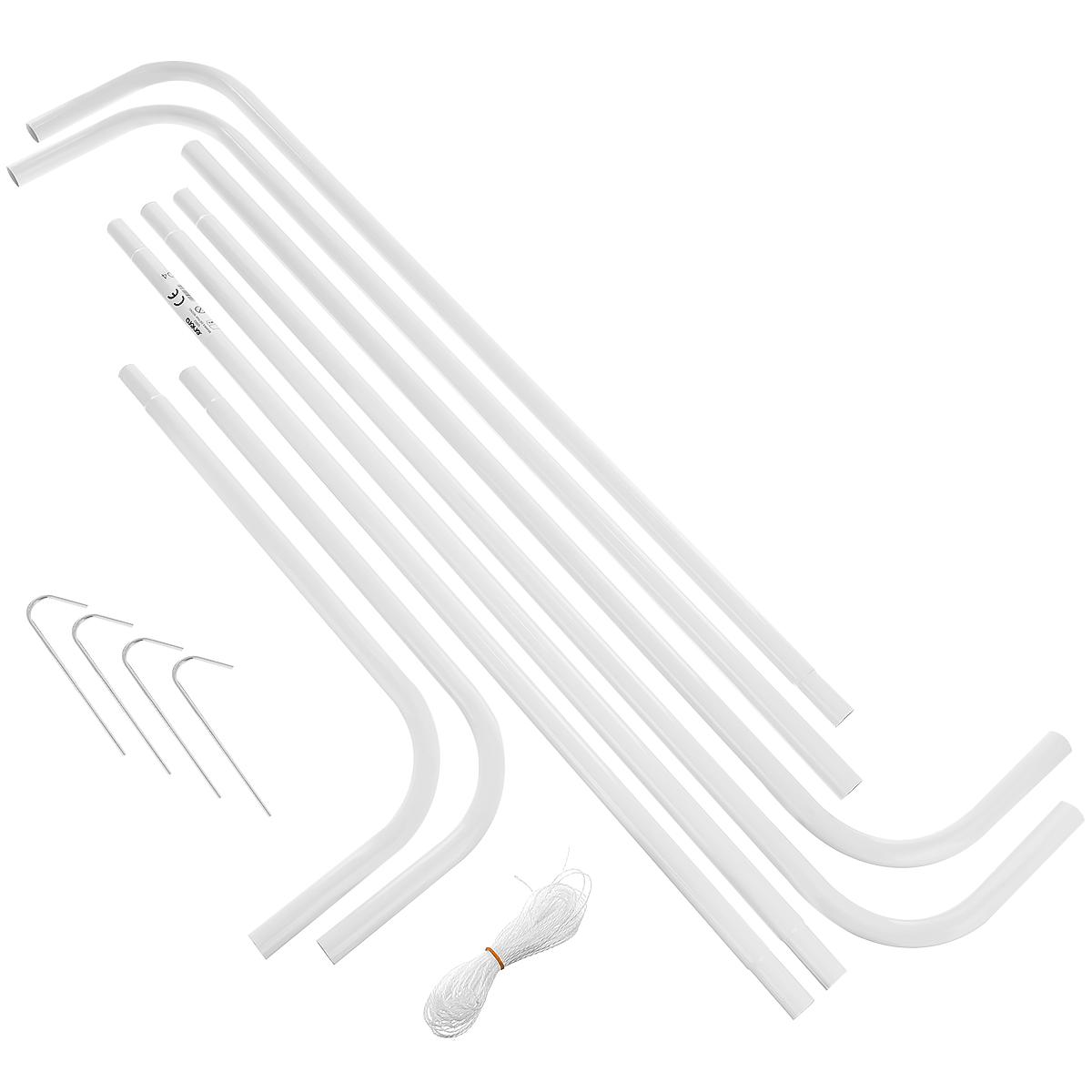 - Zestaw zawiera: składaną bramkę, siatkę, szpilki i instrukcję.