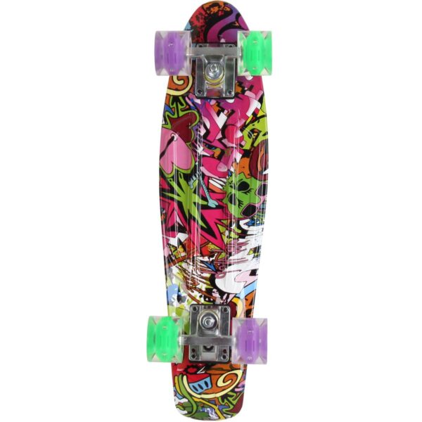 Jazda na deskorolce to sport indywidualny, który daje nie tylko frajdę, ale też poprawia sprawność fizyczną, pobudzając wszystkie mięśnie. Pozwala również, ćwiczyć wytrwałość i cierpliwość. DESKOROLKA GRAFFITI ENERO idealnie posłuży do rozpoczęcia przygody z tym rodzajem sportu oraz do nauki podstawowych trików. Potocznie tego rodzaju deskorolki nazywane są fiszkami. Ich nazwa pochodzi od angielskiego słowa „fish” oznaczającego rybę, z uwagi na ich charakterystyczny kształt i znane są na całym świecie
