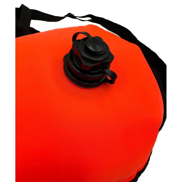 Bojka posiada regulowaną i wytrzymałą linkę do mocowana na pasie, dzięki czemu każdy będzie mieć pewność, że bojka będzie blisko podczas pływania.