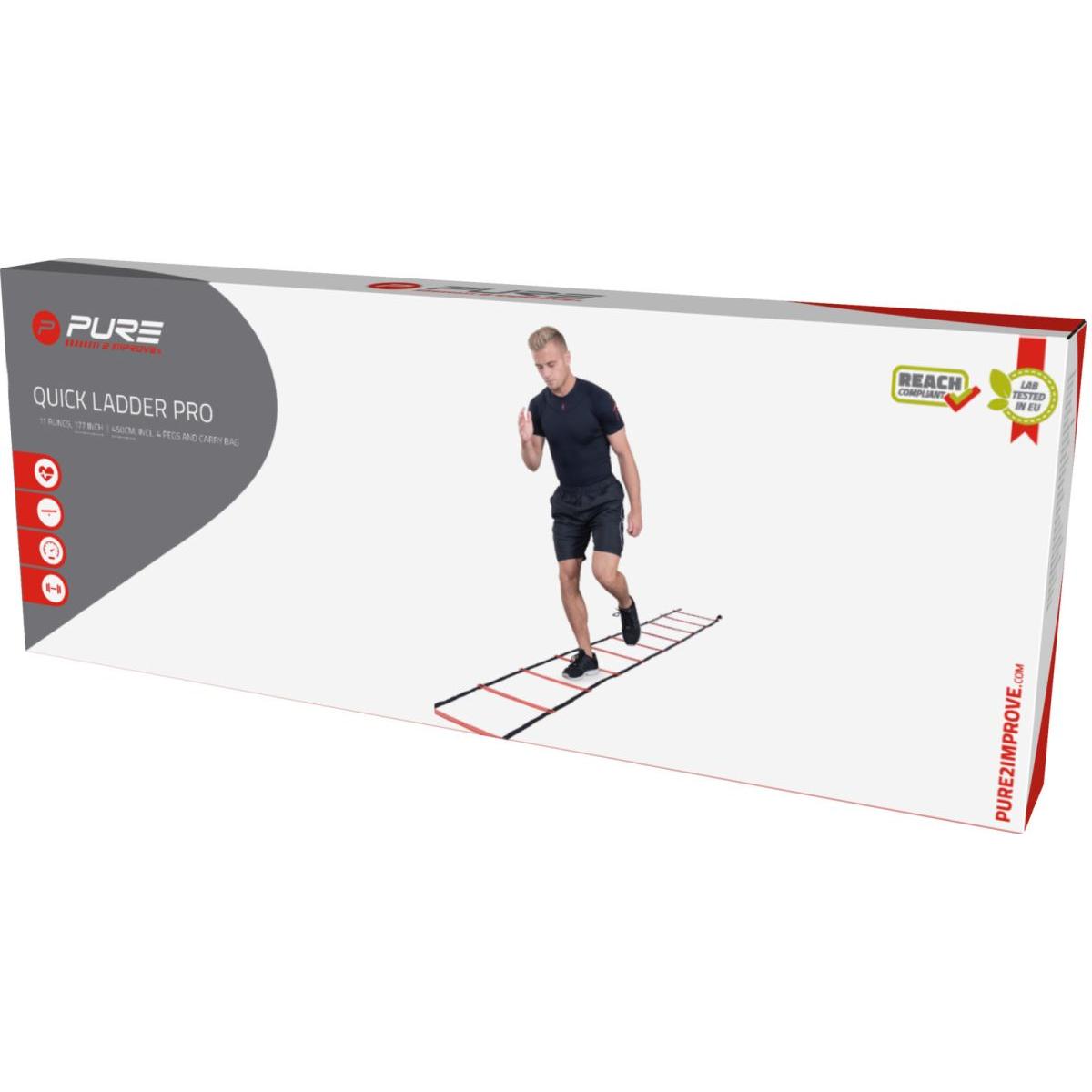 DRABINKA SPRAWNOŚCIOWA 4,5M REGULOWANA SZEROKOŚĆ PURE 2 IMPROVE będzie idealna do wszelkiego rodzaju treningów. Ustawiona na podłożu, pozwala w łatwy sposób pracować nad szybkością, pracą nóg i ogólną sprawnością. Pomaga trenować koordynację, szybkość, zwinność i ogólną sprawność, dzięki temu jest idealna również dla koszykarzy, tenisistów, hokeistów i graczy piłki ręcznej.