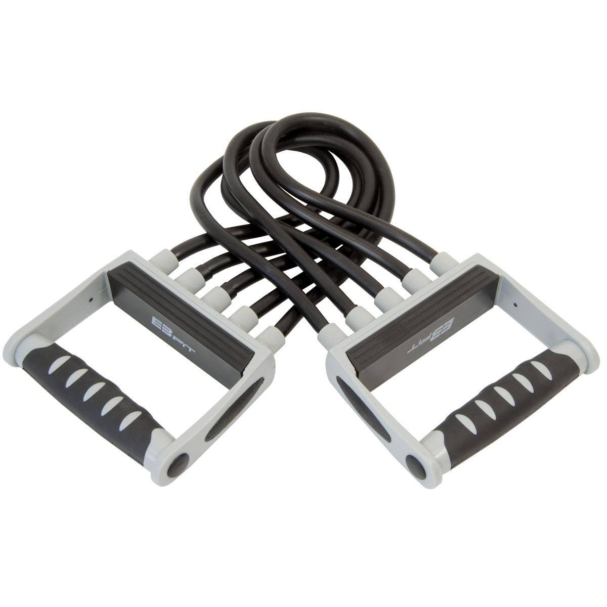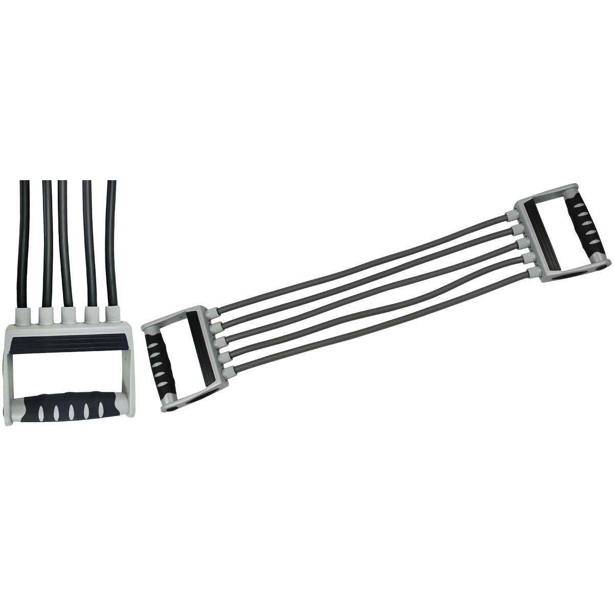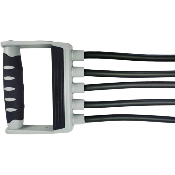 Przyrząd składa się z pięciu gum z materiału , posiada wygodne, plastikowe uchwyty, które dobrze leżą w dłoni i nie wyślizgują Ci się podczas ćwiczeń.