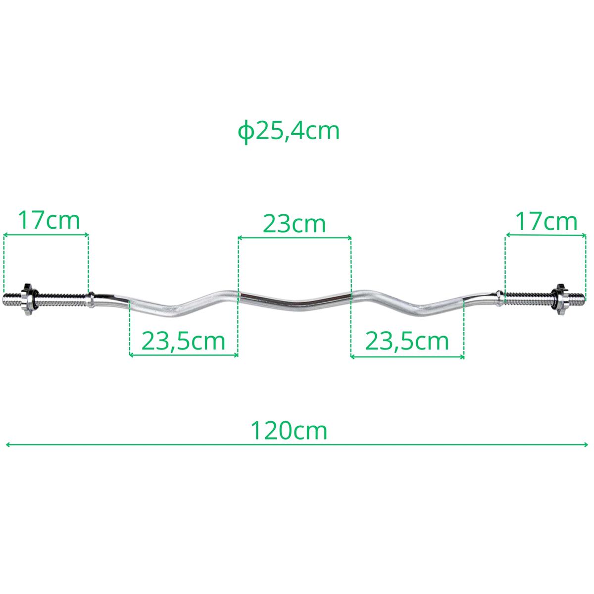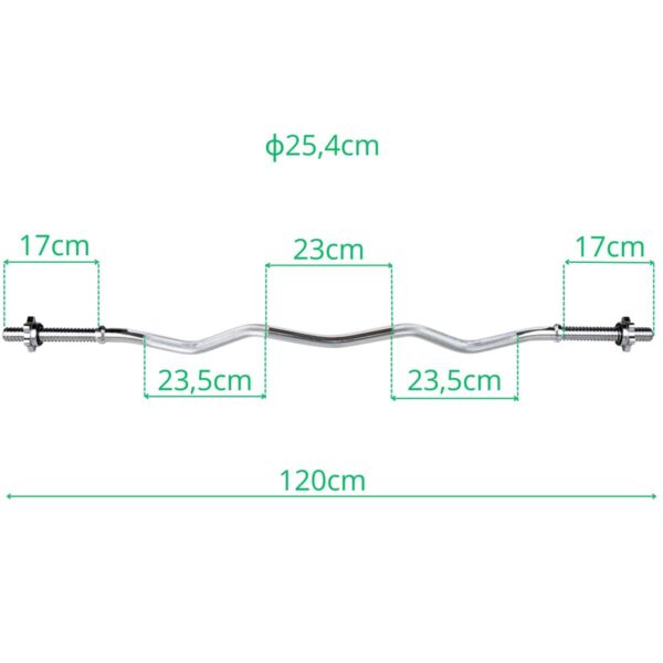 Wykonany z wysokiej jakości stali chromowanej 120 cm gryf o średnicy 25,4 mm jest trwały i odporny na uszkodzenia mechaniczne, a dołączone zaciski zabezpieczone gumowymi nakładkami zapobiegają tarciu i rysowaniu się talerzy. Maksymalne obciążenie do 120 kg pomoże Ci osiągnąć wymarzone rezultaty i posłuży Ci przez wiele lat zachowując świetny wygląd.