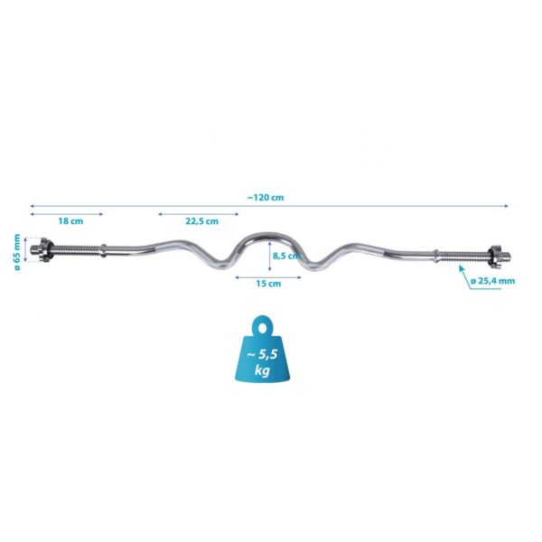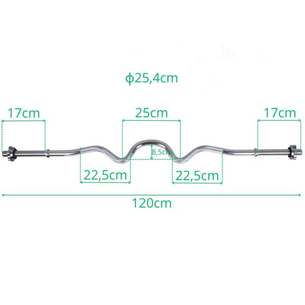 Wykonany z wysokiej jakości stali chromowanej 120 cm gryf o średnicy 25,4 mm jest trwały i odporny na uszkodzenia mechaniczne, a dołączone zaciski zabezpieczone gumowymi nakładkami zapobiegają tarciu i rysowaniu się talerzy. Maksymalne obciążenie do 120 kg pomoże Ci osiągnąć wymarzone rezultaty i posłuży Ci przez wiele lat zachowując świetny wygląd.