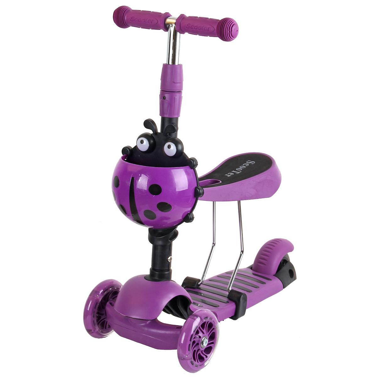 Koszyczek – biedronka przyczepiana do sztycy jeździka pozwoli dziecku na schowanie swoich skarbów lub małej przekąski, a regulowane, zdejmowane siodełko wyściełane miękką powłoką, wygodnie usiąść.