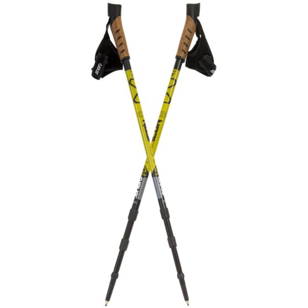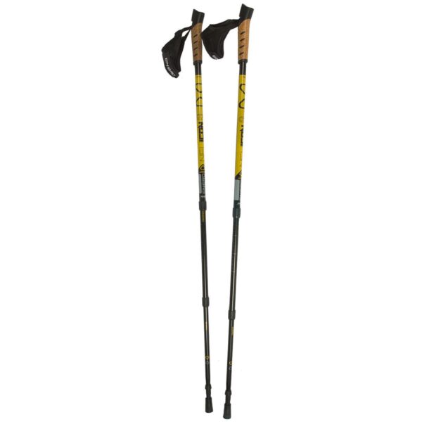 Kije są dwuczęściowe, rozkładane stopniowo, poprzez skręcanie dwóch sąsiednich segmentów, po ich rozłożeniu i ustawieniu odpowiedniej dla Ciebie długości, uruchamiana jest blokada, która ustawia kije na stałe w odpowiedniej pozycji.