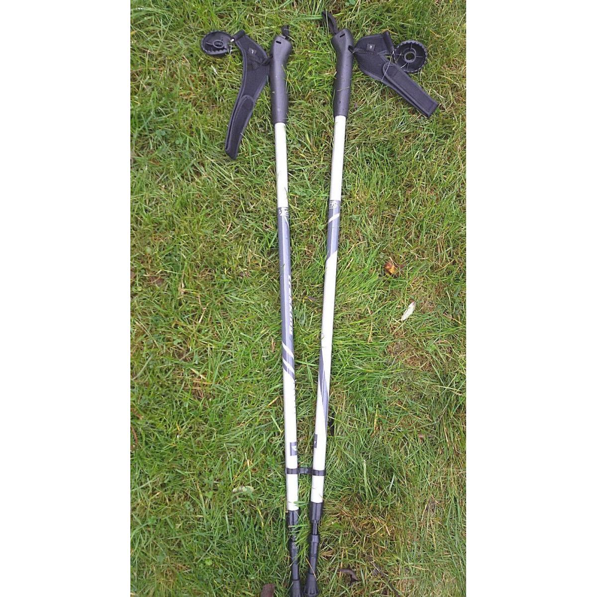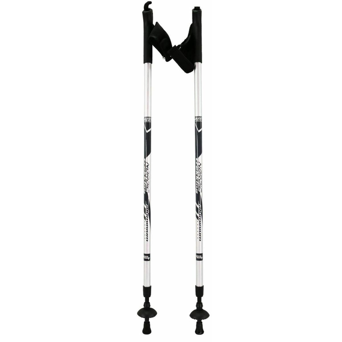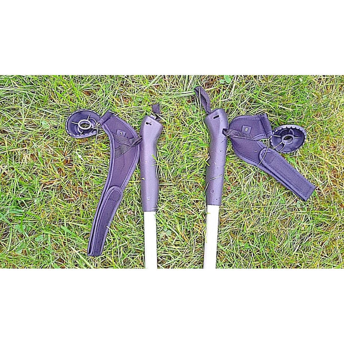 • W zestawie: 2 kije dwu-sekwencyjne, 2 talerzyki, 2 końcówki trekkingowe, 2 paski na rękę