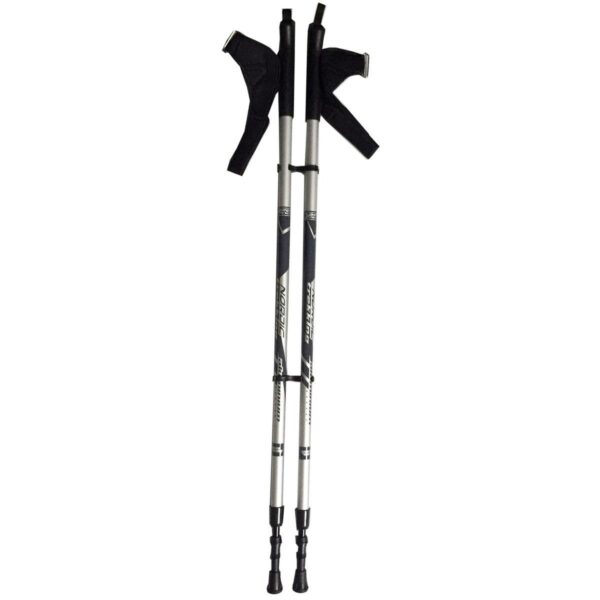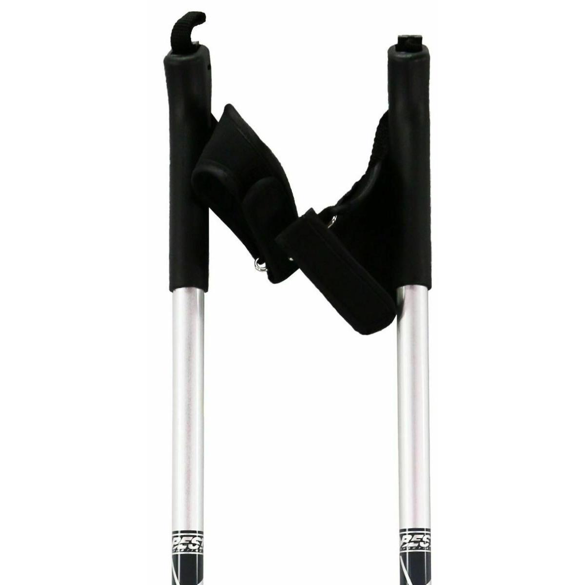 Wysokiej jakości kije do trekkingu marki Best Sporting wykonane z lekkiego i wytrzymałego aluminium ze srebrnym wykończeniem i szarym nadrukiem. Paski na rękę są uniwersalne dzięki zmiennemu zapięciu na rzep. Ergonomiczne ukształtowane uchwyty wykonane są z antypoślizgowego tworzywa sztucznego.