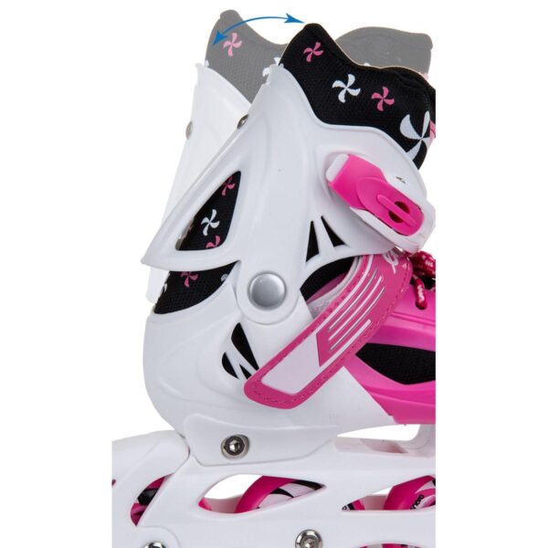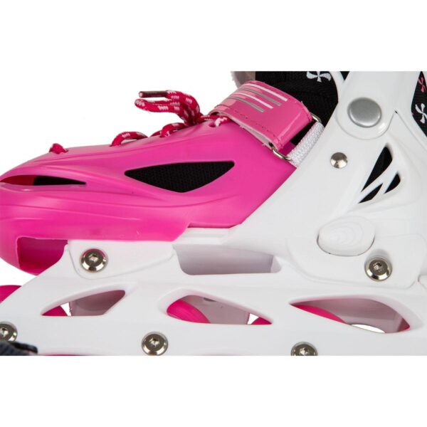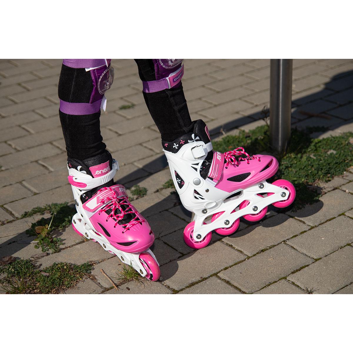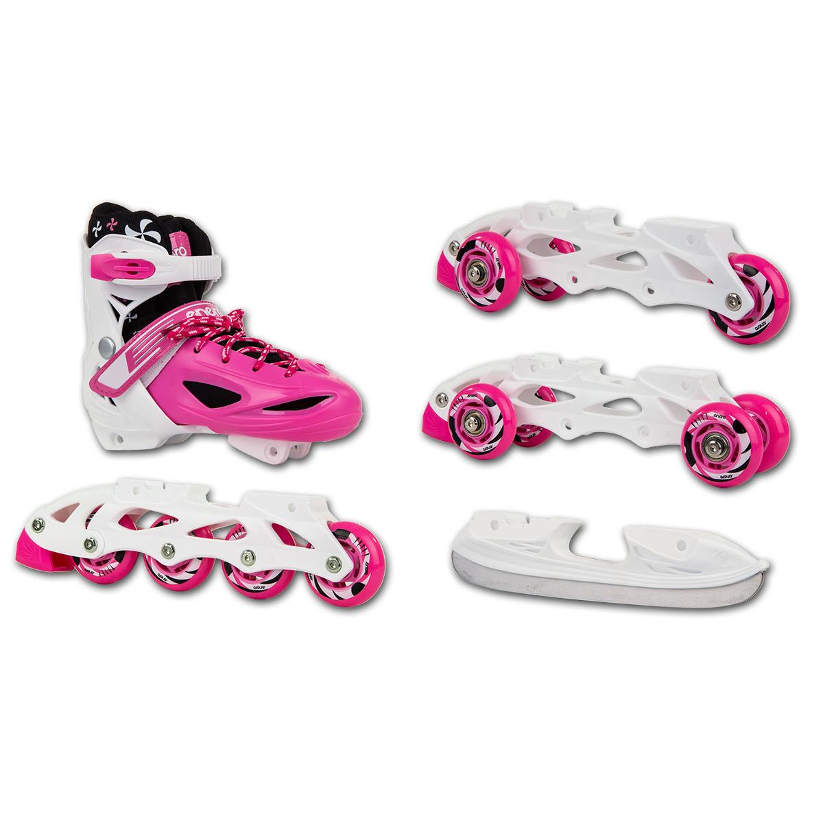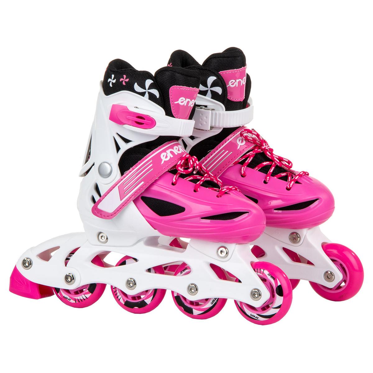 ŁYŻWOROLKI – 3 SKATE – ŁYŻWY- WROTKI 4W1 ENERO gwarantują czystą przyjemność z jazdy. Wyposażone są w lekką i mocną płozę z materiału PP, hamulec przy jednej rolce, kółka PVC o średnicy 64 mm i szerokości 22 mm, regulowane 3 zapięcia oraz regulację rozmiaru. Kółka z tworzywa PVC oraz łożyska ABEC 5 pozwalają na mniejsze opory toczenia, dobrze adoptują się do podłoża, idealnie pasują do nauki lub spokojnej rekreacyjnej jazdy. Wzmocniony wierzch obuwia , szeroki wygodny krój oraz miękka wyściółka wokół kostki zwiększają znacznie komfort użytkowania podczas jazdy. Ostrze łyżwy wykonane ze stali nierdzewnej jest odporne na uszkodzenia oraz rdzę.