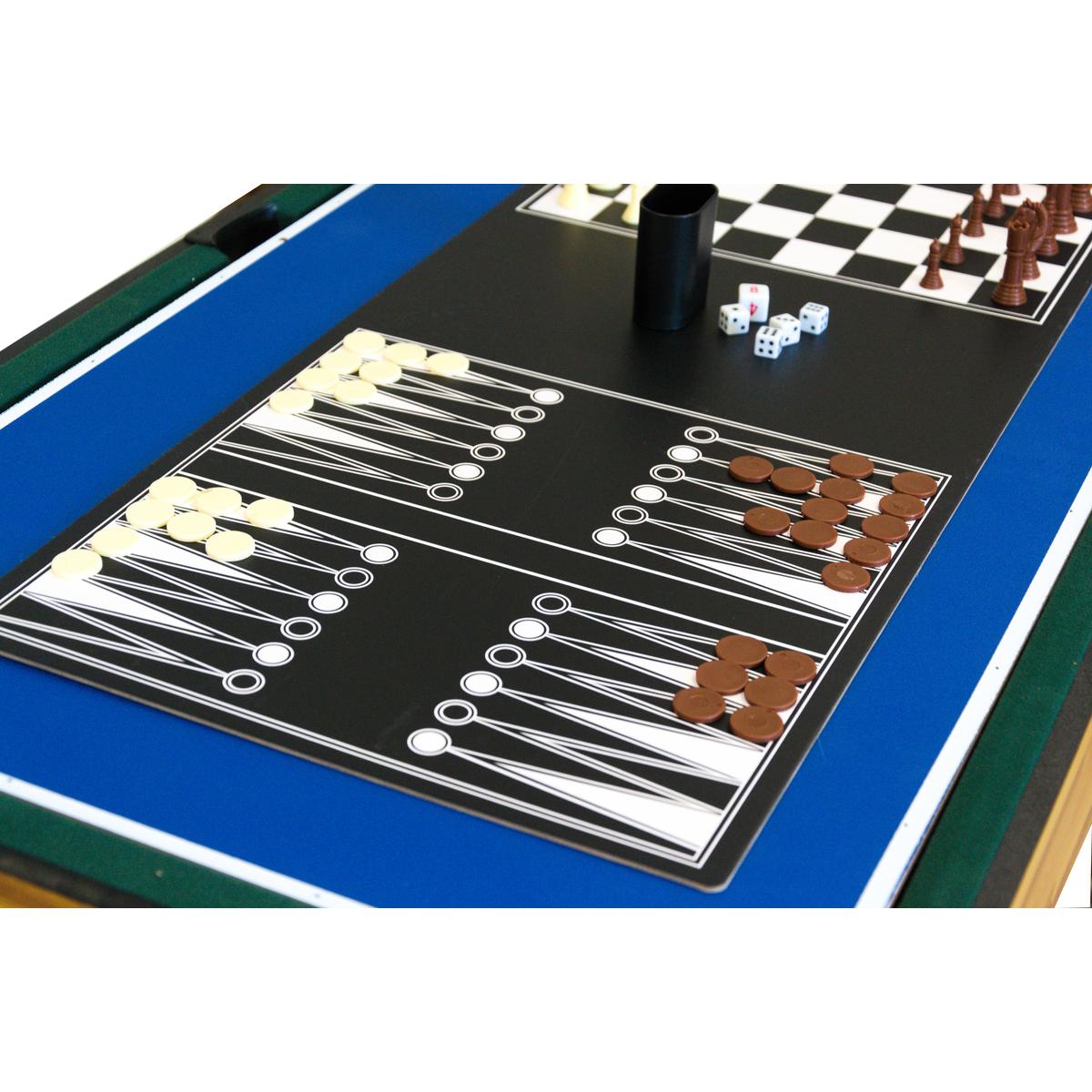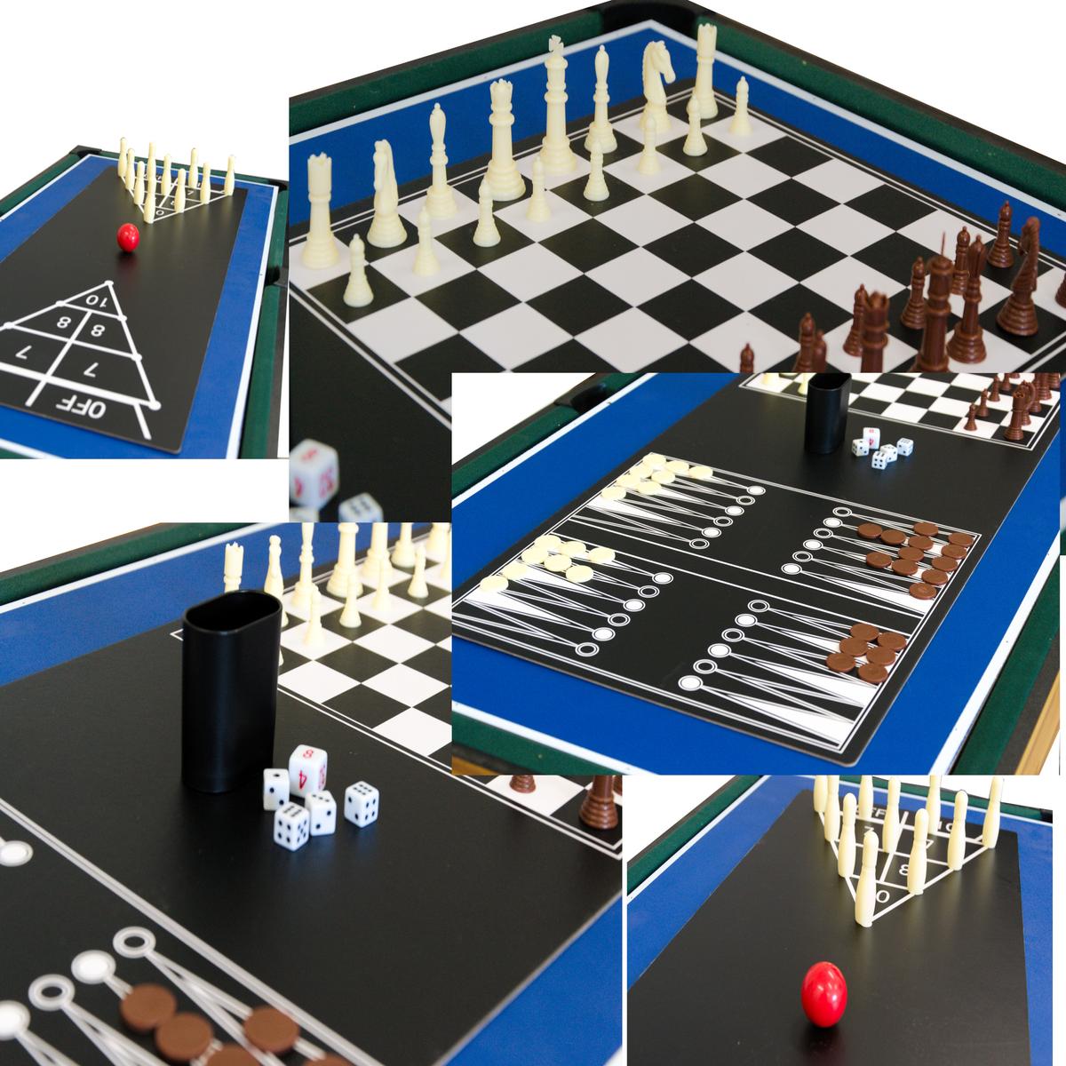 STÓŁ DO MULTI GIER 9W1 121x61x80CM zagwarantuje Ci ekscytujące rozgrywki, wcielisz się w zawodników na boisku do gry w piłkarzyki lub cymbergaja, zagrasz w bilard, kręgle, kości, ping ponga, kręgle, tryktraka a nawet schuffleboard!