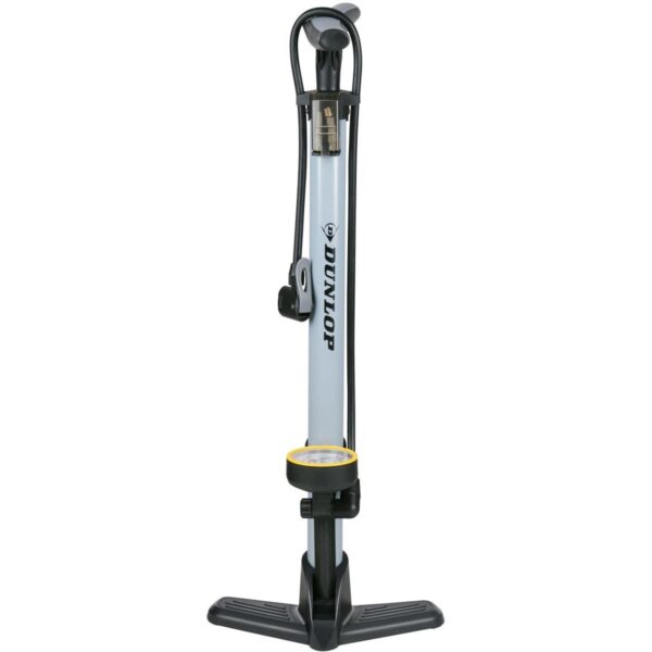 POMPKA WARSZTATOWO ROWEROWA DUNLOP 230Psi (16Bar) Z MANOMETREM SZARA to praktyczne narzędzie, do pompowania opon rowerowych i innych pojazdów takich jak motocykle czy samochody.