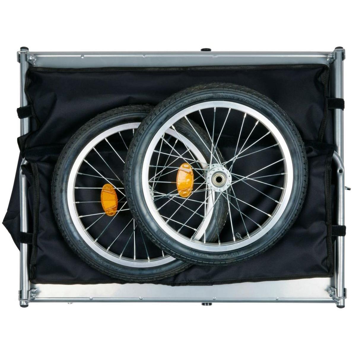 Przyczepka Dunlop o wymiarach około 70x65x30 cm zapewnia wystarczającą przestrzeń do przewozu zakupów, sprzętu sportowego, dzieci czy innych niezbędnych przedmiotów, jednocześnie zachowując stabilność i bezpieczeństwo podczas jazdy.