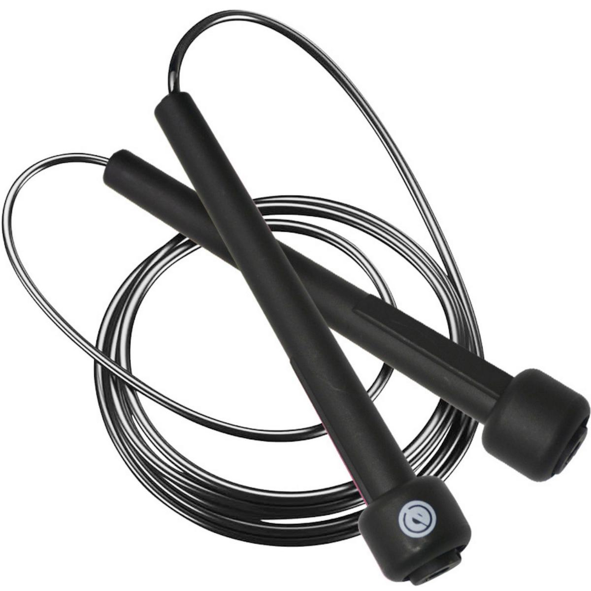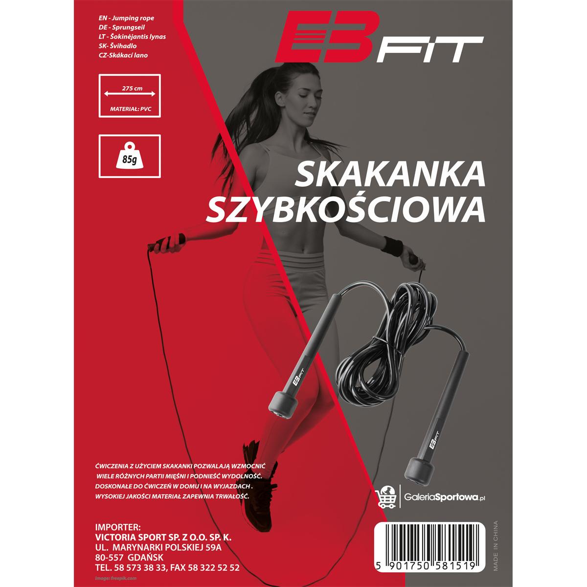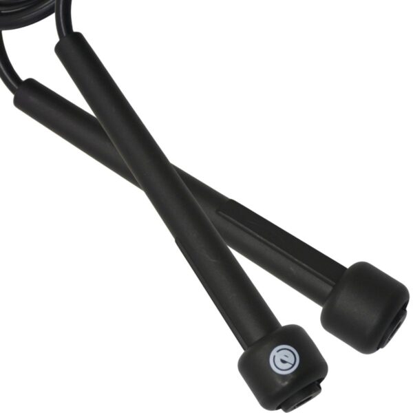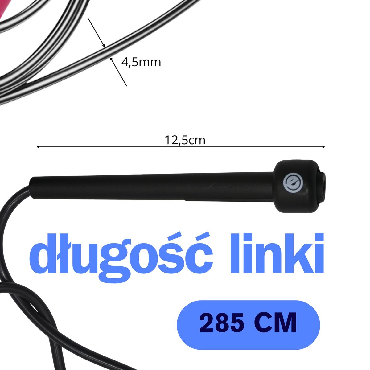 SKAKANKA SZYBKOŚCIOWA PVC 285CM CZARNA ENERO FIT została wykonana z towrzywa sztucznego, jej długość z rączkami to długość 285 cm, średnica linki 4,5 mm, a długość uchwytu, który obraca się wokół własnej osi to 12 cm.