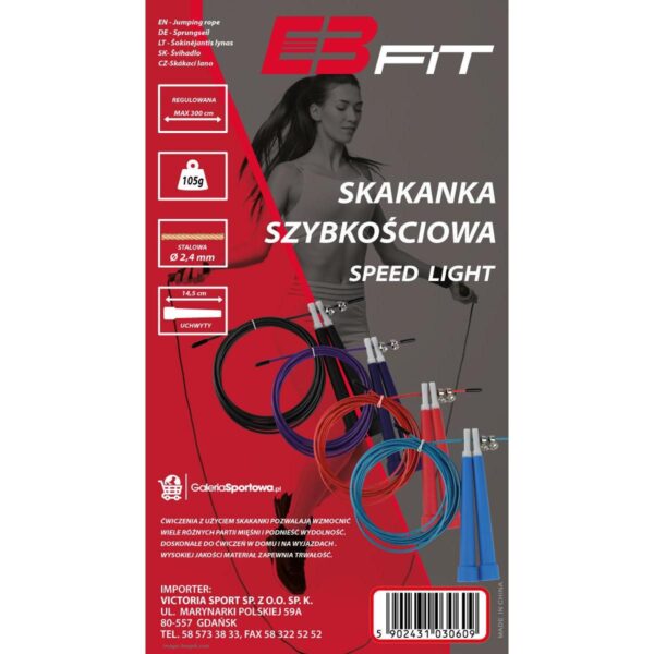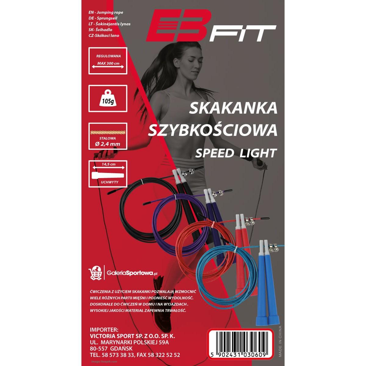 Skakanka SZYBKOŚCIOWA Speed Light to wyjątkowo funkcjonalny przyrząd fitness, który przy regularnym stosowaniu przynosi rewelacyjne efekty! Ćwiczenia na skakance umożliwiają intensywny trening CARDIO oraz CROSSFIT. Skakanka może być doskonałą rozgrzewką przed właściwym treningiem.