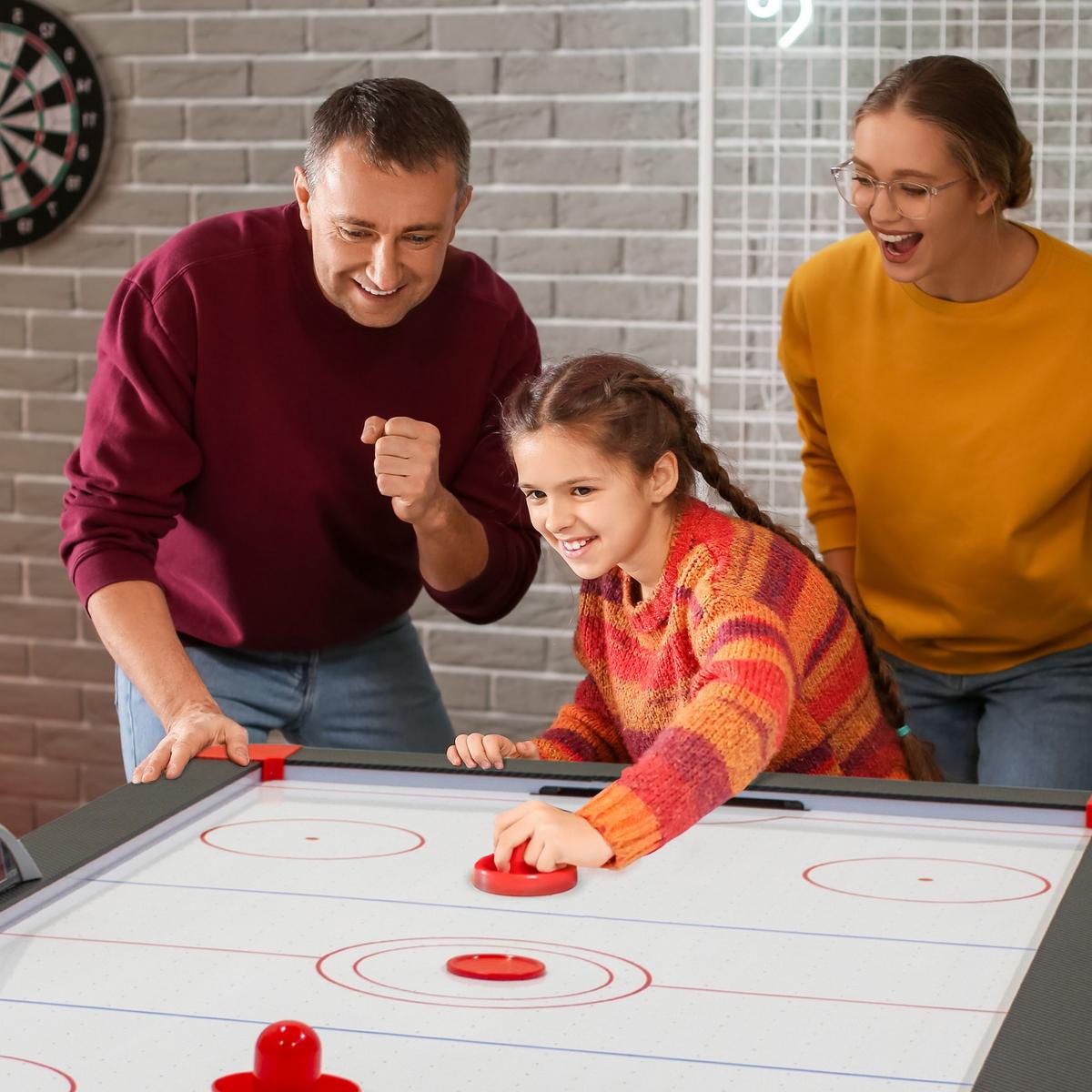 Stół posiada specjalny wentylator podłączony do zasilacza, który poprzez perforowaną powierzchnię wydmuchuje powietrze, lekko unosząc krążek. Daje to podczas gry efekt podobny do sunięcia krążka po tafli lodu.