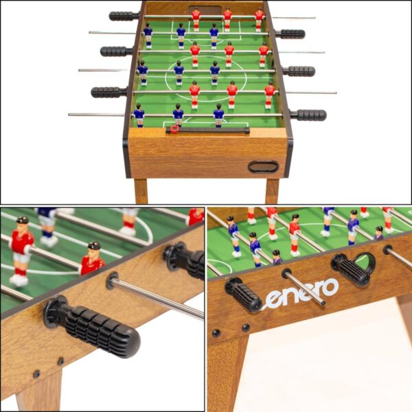 STÓŁ DO GRY W PIŁKARZYKI WOODEN 69×36,5x65CM są idealne dla osób, które nie mają wystarczająco dużo miejsca na pełnowymiarowy stół do piłkarzyków, ale chcą cieszyć się grą.