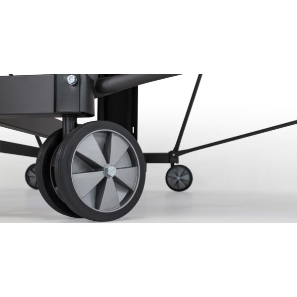 4 podwójne, skrętne koła o średnicy 125 mm, z bieżnikiem gumowym na każdym blacie