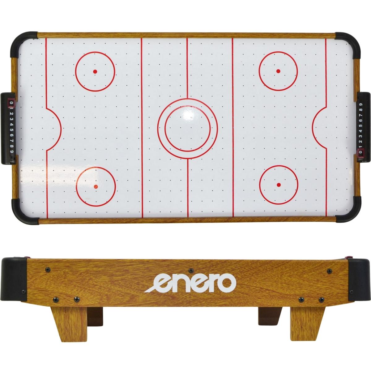Stół posiada specjalny wentylator zasilany na baterie 3 x 1,5AA (brak w zestawie), który poprzez perforowaną powierzchnię wydmuchuje powietrze, lekko unosząc krążek. Daje to efekt podobny do sunięcia krążka po tafli lodu.