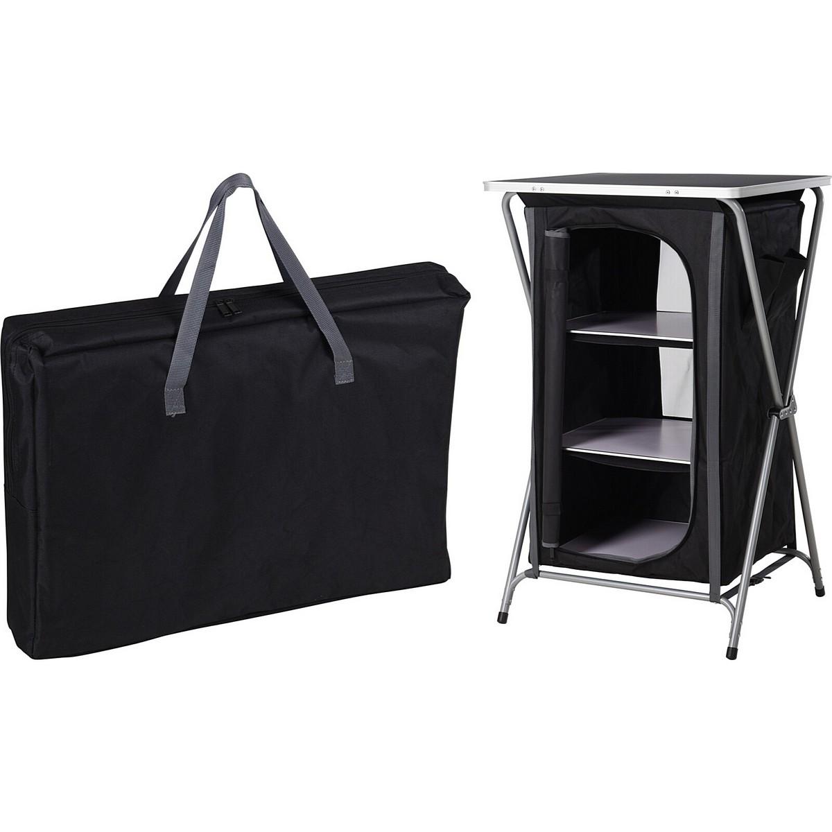 SZAFA TURYSTYCZNA SKŁADANA Z 3 PÓŁKAMI 60x53x97CM REDCLIFF zapewni organizację i przechowywanie niezbędnych rzeczy, takich jak naczynia, artykuły higieniczne czy jedzenie. Jej konstrukcja pozwoli na szybkie rozłożenie i złożenie, co jest bardzo wygodne podczas podróży!