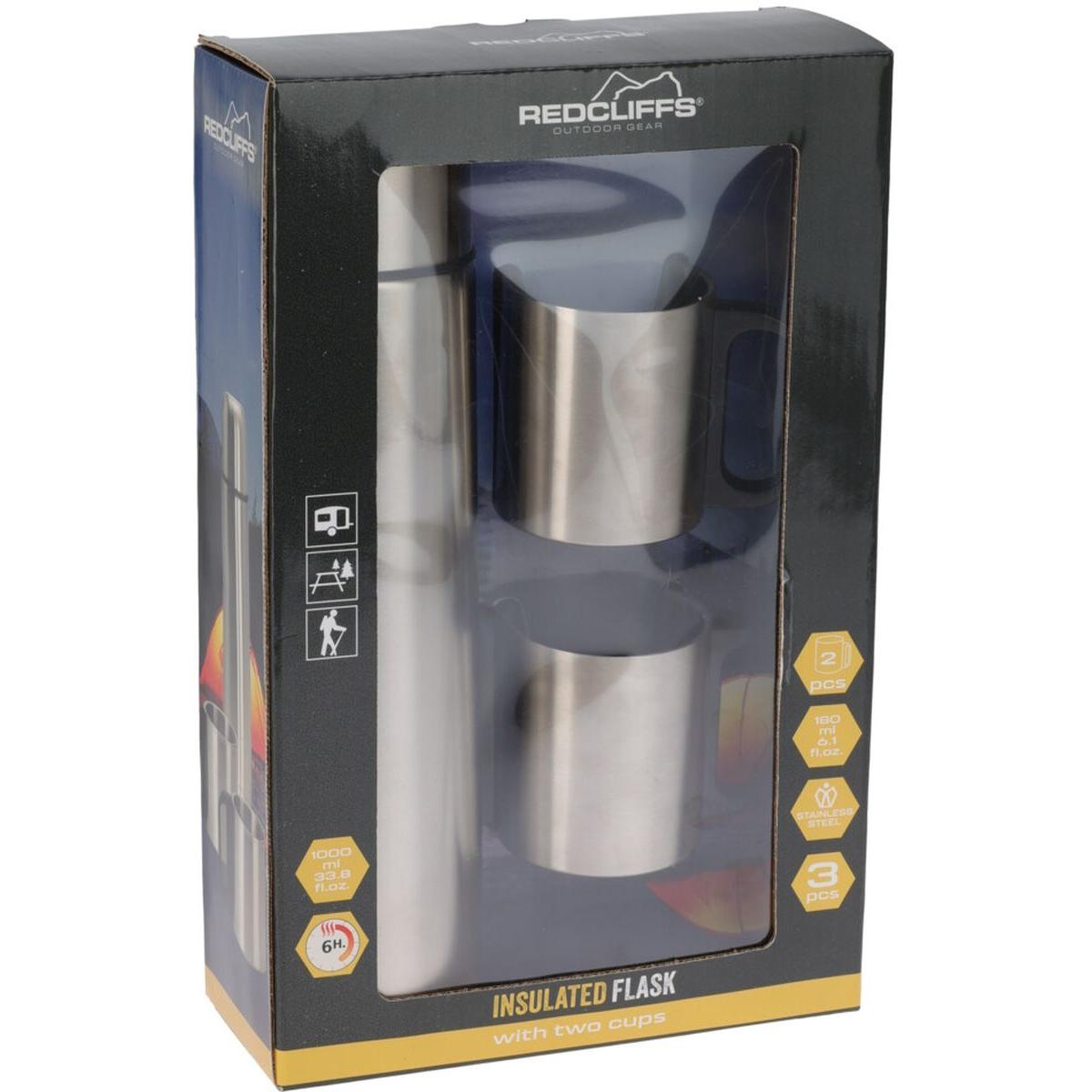 TERMOS TURYSTYCZNY 1000ML Z 2 KUBKAMI SREBRNY
