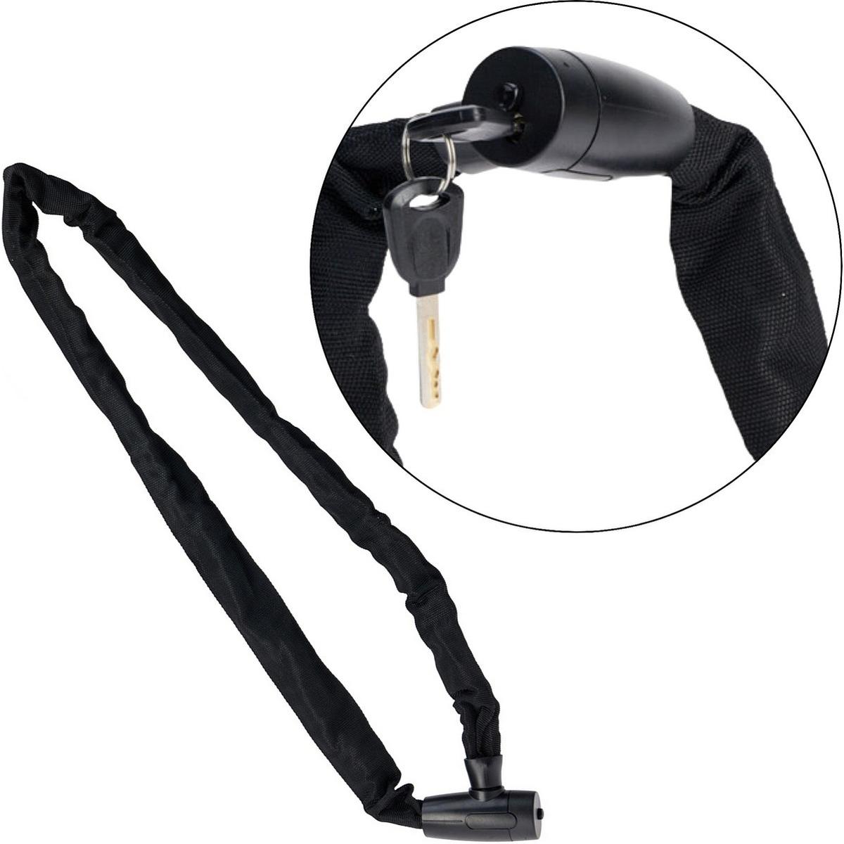Całkowita długość zapięcia wynosi ok.120 cm, dzięki czemu bez problemu przypniesz go do stałych elementów infrastruktury, na przykład do poręczy czy stojaka na rowery.
