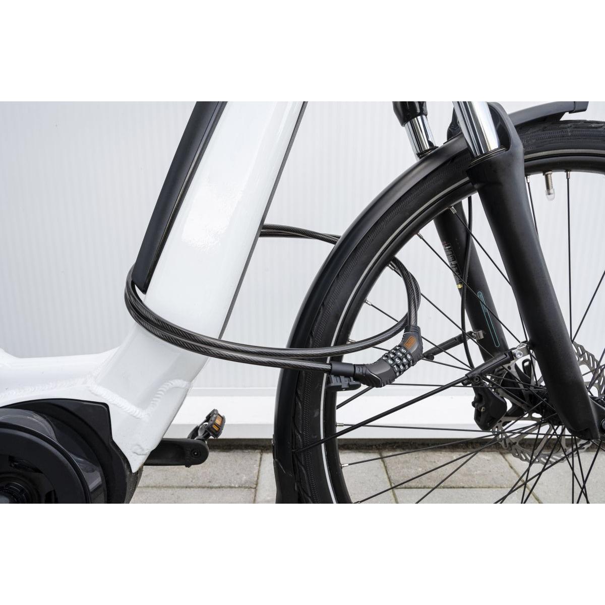Całkowita długość zapięcia wynosi 90 cm, dzięki czemu bez problemu przypniesz go do stałych elementów infrastruktury, na przykład do poręczy czy stojaka na rowery. Średnica linki to 10 mm, dzięki czemu stanowi ona dobrą ochronę przed kradzieżą.