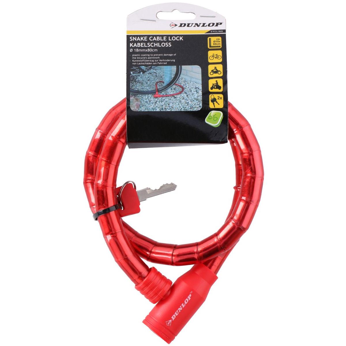Solidne zapięcie spiralne marki DUNLOP otoczone delikatnym tworzywem sztucznym chroniącym ramę przed zarysowaniami. Wyposażone w automatyczny cylinder i płaski klucz.