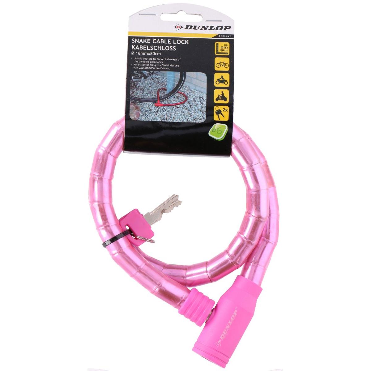 ZAPIĘCIE ROWEROWE SPIRALNE NA KLUCZ WĄŻ 18MMx80CM DUNLOP RÓŻOWE to bardzo praktyczny element wyposażenia zapewniający Twojemu jednośladowi zabezpieczenie przed kradzieżą.
