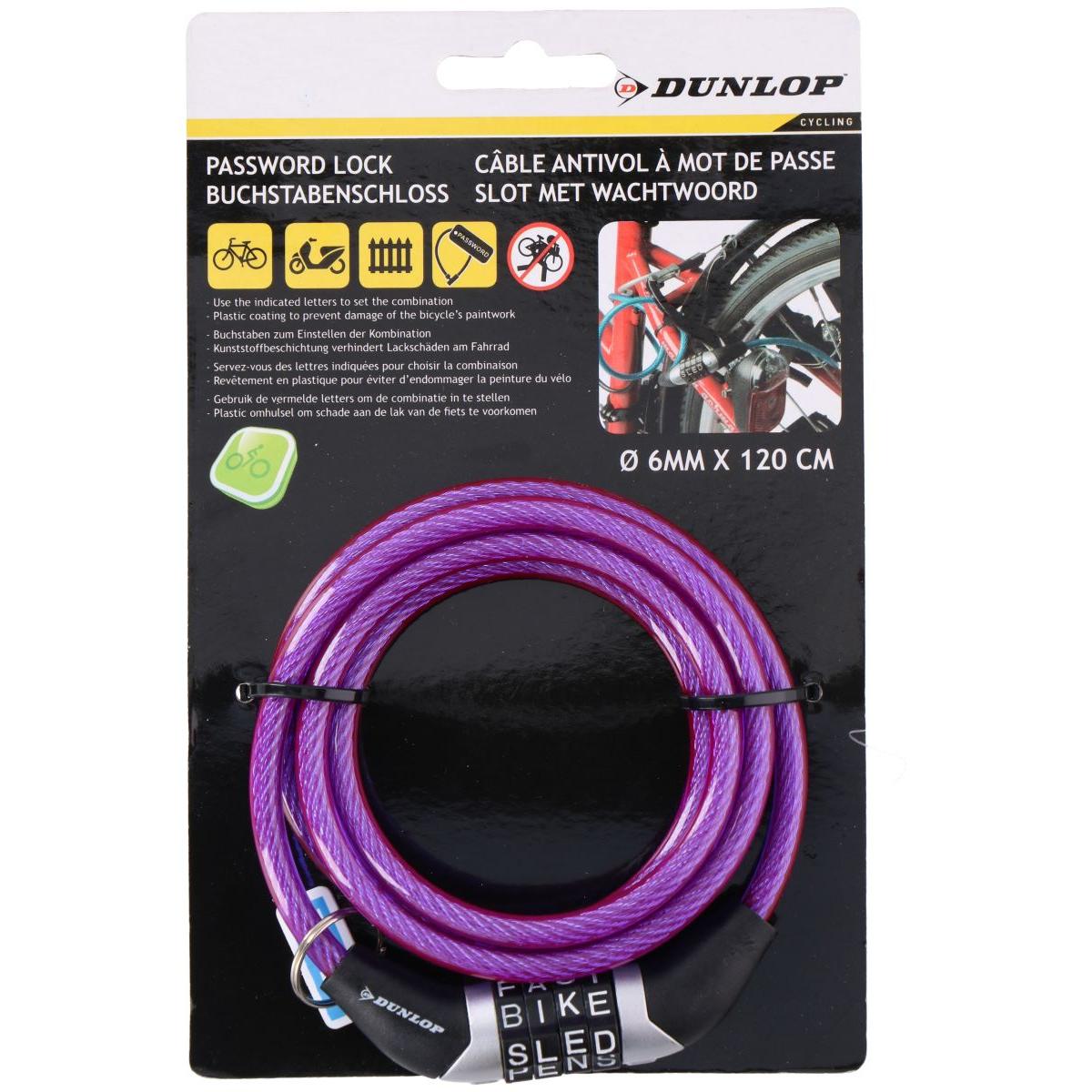 ZAPIĘCIE ROWEROWE SPIRALNE SZYFR 0.6x120CM FIOLETOWE DUNLOP