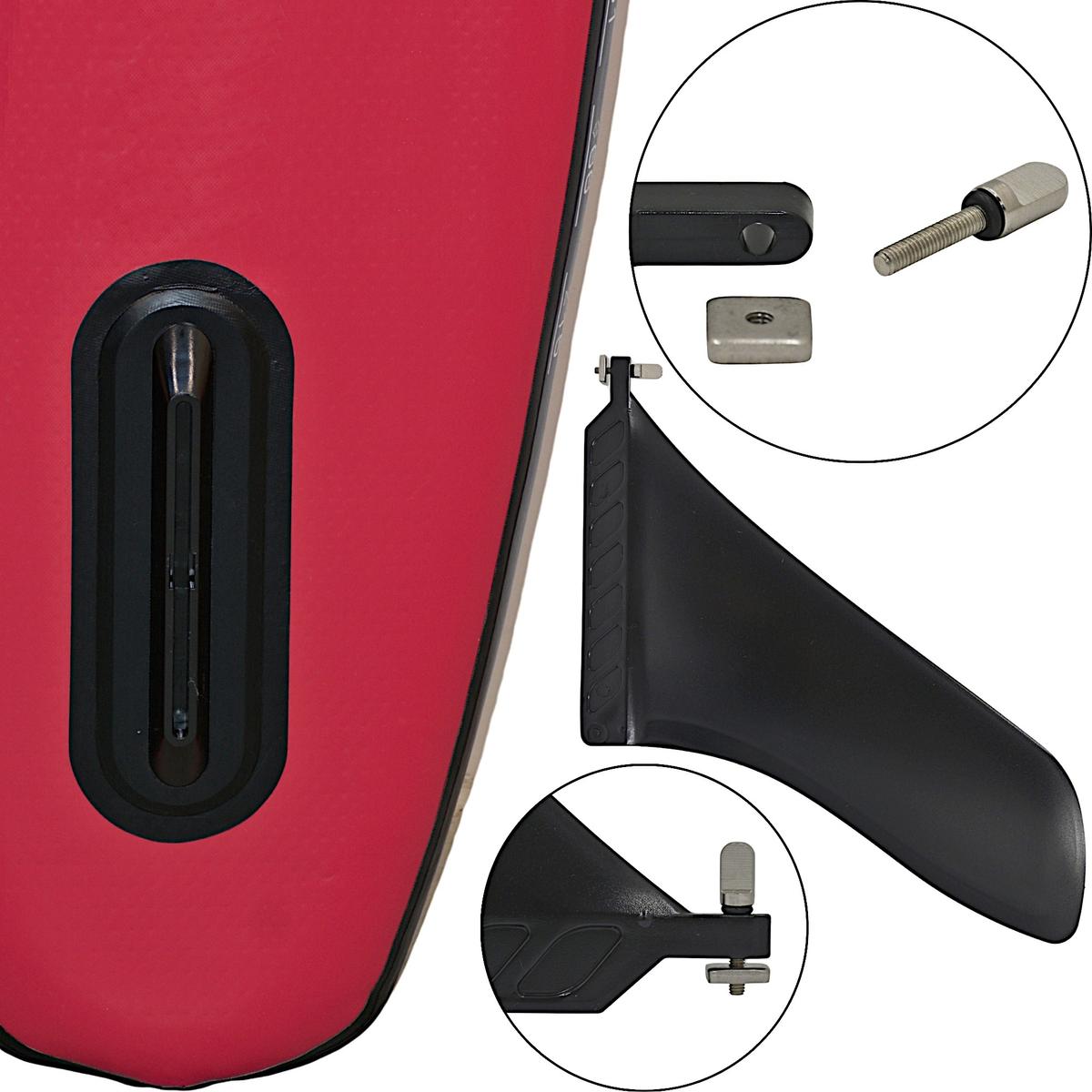Zapewnia stabilność kierunkową i ułatwia naukę manewrów. Po zakończeniu pływania można go łatwo odpiąć bez użycia narzędzi, co umożliwia szybkie złożenie deski do transportu. Kompaktowość i wygoda w jednym rozwiązaniu.