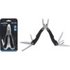 Zestaw zawiera m.in. kombinerki z długim noskiem i standardowe, przecinacz do drutu, przyrząd do wyciągania haczyków, miarka, skrobaczka łusek, nóż, śrubokręt mały i duży, śrubokręt krzyżowy, mała piła pojedyncza, mała piła podwójna, pilniczek, otwieracz do butelek, otwieracz do puszek, mały śrubokręt.